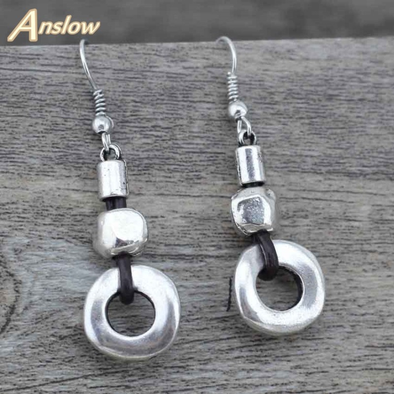 The ANSLOW drop earrings are a stylish and vintage-inspired accessory that can add an extra touch of glamour to any outfit. Made of high-quality zinc alloy, these earrings are built to last and have a beautiful polished finish. The earrings feature a round shape with a unique geometric pattern, making them stand out from other earrings. The earrings also have a leather material which gives them a unique and rustic charm. These earrings are perfect for women who want to add a touch of vintage-inspired glamour to their style. They are suitable for a wide range of occasions, from formal events to casual outings, and can be worn with a variety of outfits. The earrings are easy to wear with their convenient drop design and are a great addition to any jewelry collection.